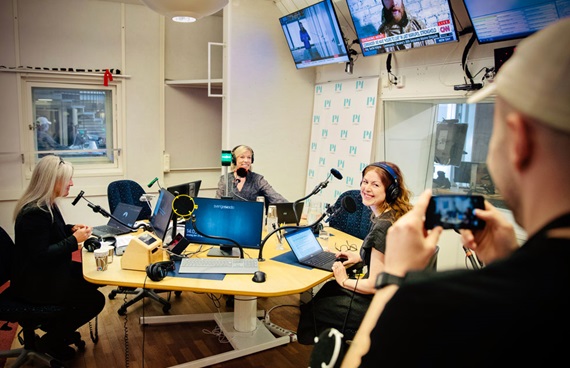 Bildreportaget Vi har alla hört rösterna som troget ger oss de senaste nyheterna. Vi har kikat in bakom kulisserna på Sveriges Radios snart 85-åriga nyhetsredaktion.